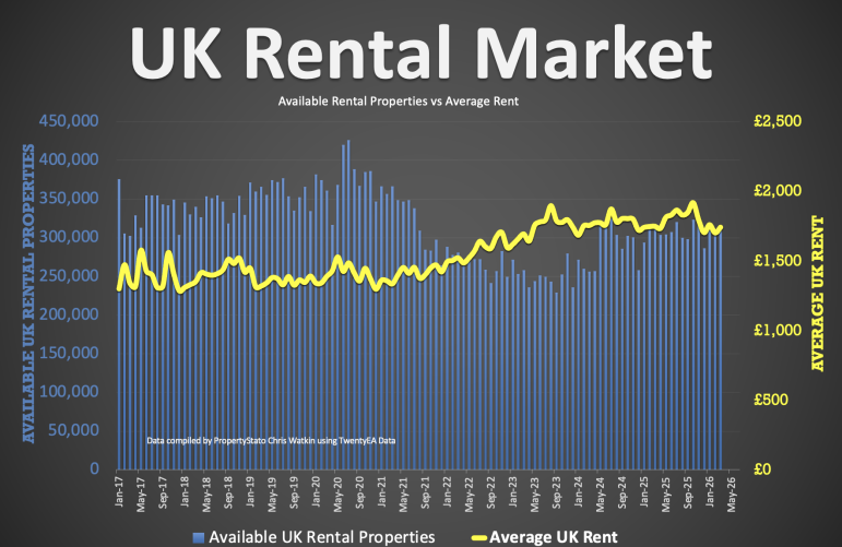 • 312k UK Rental Stock available to rent in March 26 (313k in March 2025).