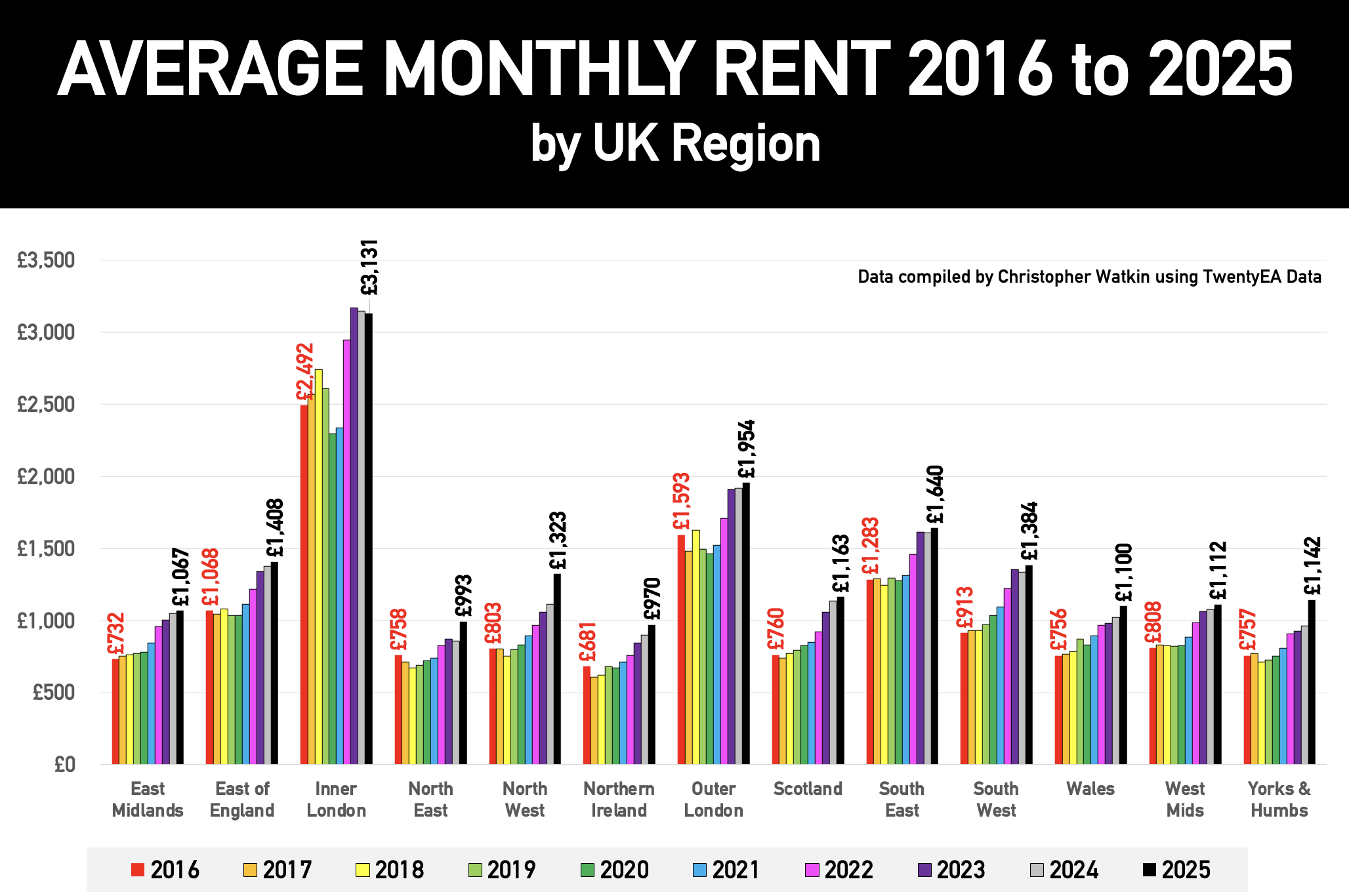 • Average Rent in March 2026 – £1,740 pcm (£1,747 in March 25)