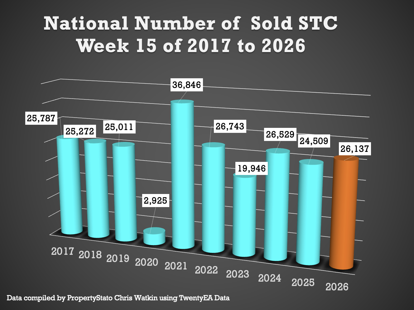 • 26.1k homes sold stc this week 15, up from 20.5k last week.