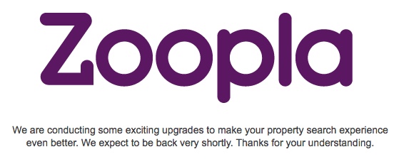 Zoopla’s property portal was taken off air yesterday afternoon. It appeared to be for a very short time as when we later looked, the service was fully back and running.